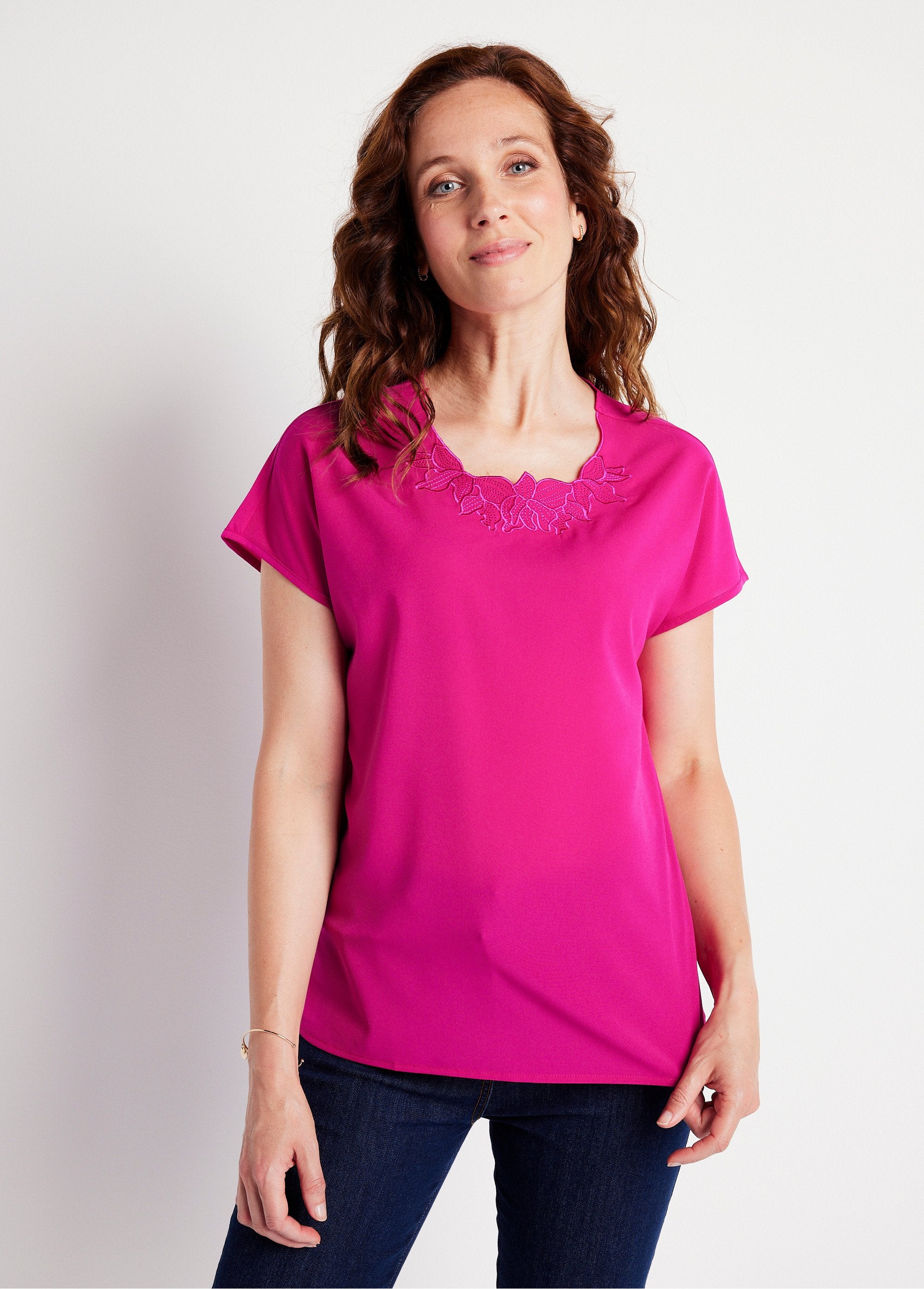 Top_longo_de_manga_curta_com_bordado_em_gola_redonda_Fúcsia_FA1_slim Top_longo_de_manga_curta_com_bordado_em_gola_redonda_Fúcsia_FA2_slim