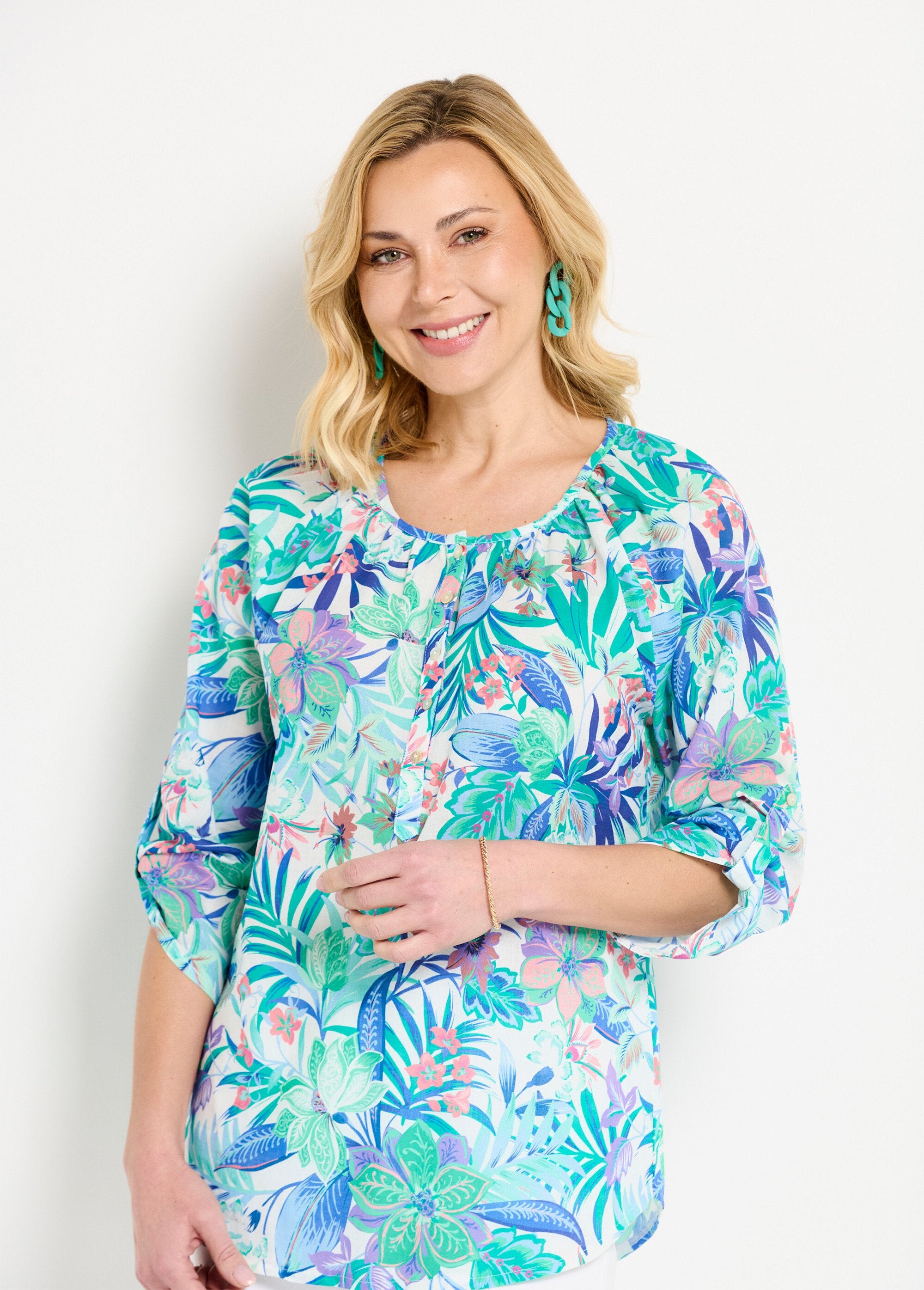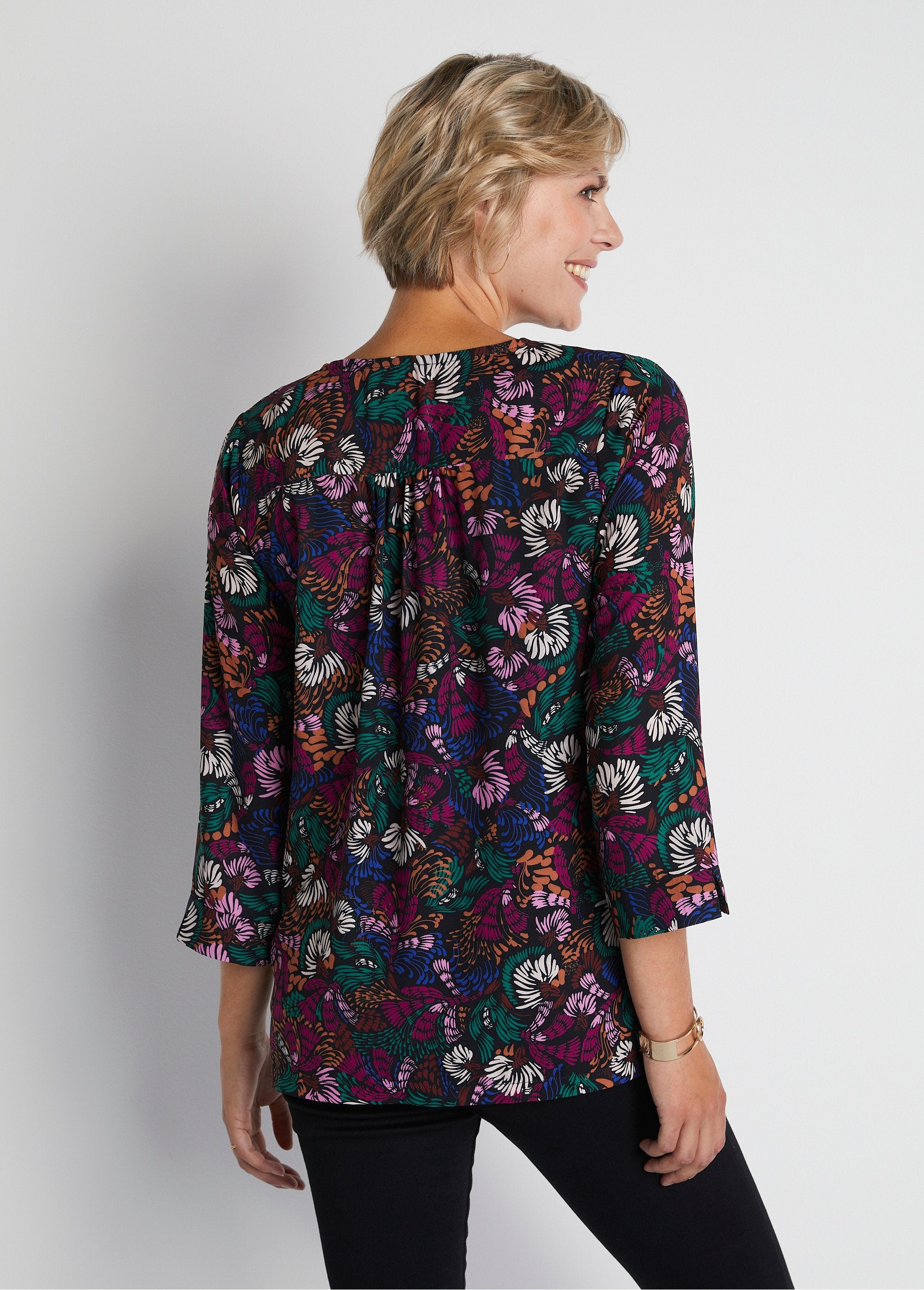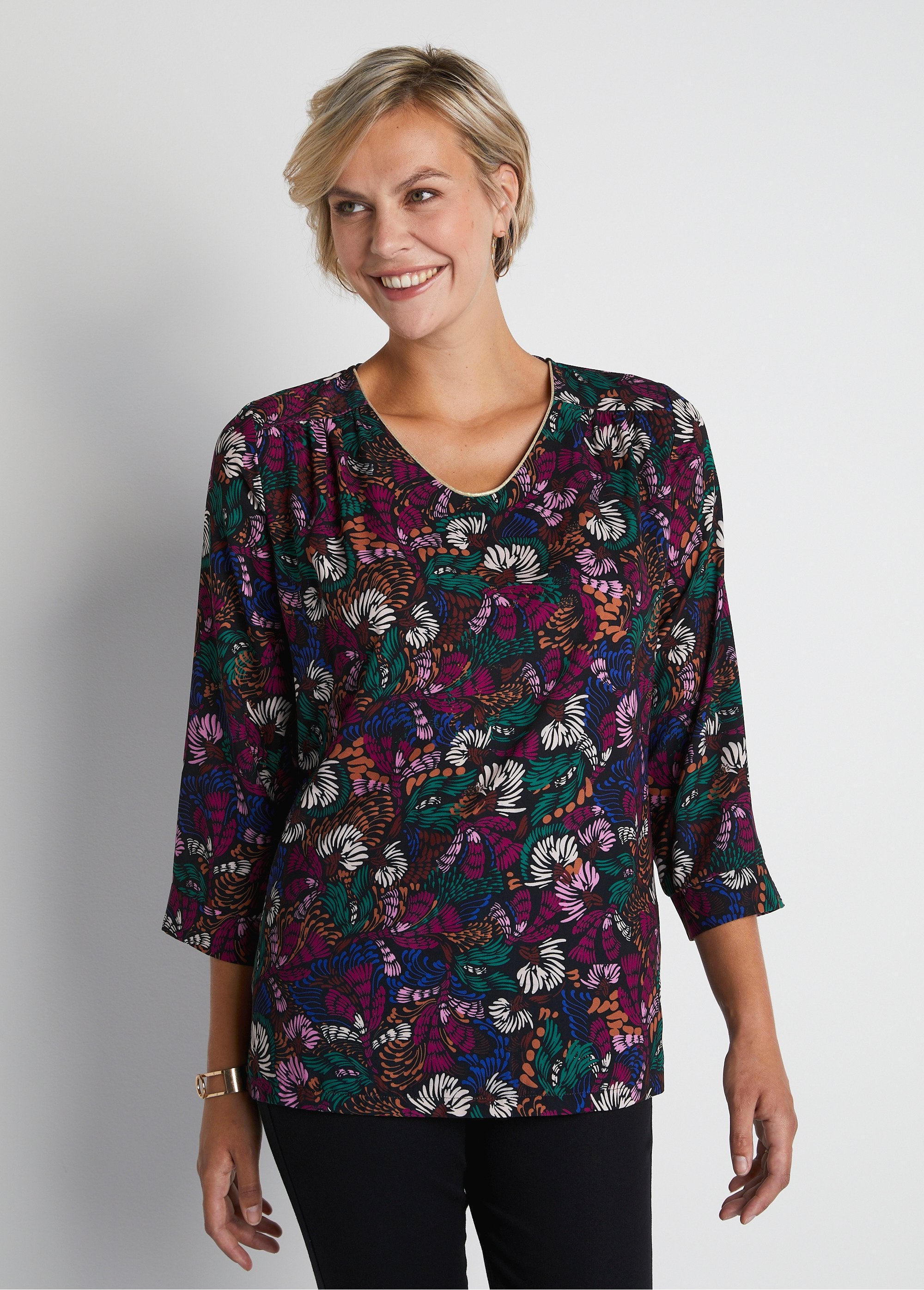 Túnica_solta_em_voile_de_algodão_estampado_com_mangas_3/4_Multicolore_FA1_slim Túnica_solta_em_voile_de_algodão_estampado_com_mangas_3/4_Multicolore_FA2_slim