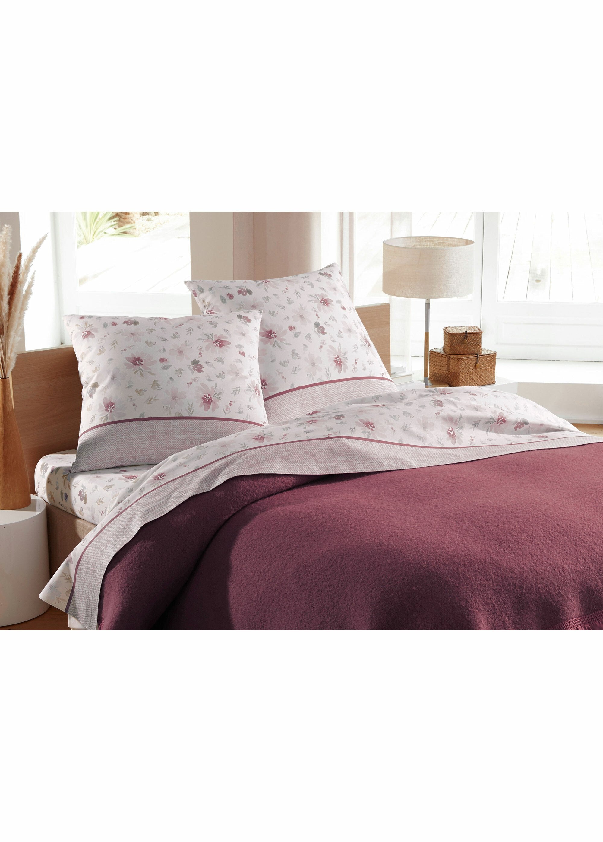 Lençol de baixo com estampa floral, acabamento pespontado e 4 cantos elásticos. Lençol de cima com estampa floral, acabamento com friso e acabamento pespontado. Uma ou duas fronhas estampadas com zíper. Altura dos cantos: 25 cm aproximadamente. Conjunto de solteiro: 1 fronha (63 x 63 cm) + lençol de cima (180 x 290 cm) + lençol de baixo com elástico (90 x 190 cm). Conjunto de casal: 2 fronhas (63 x 63 cm) + lençol de cima (240 x 290 cm) + lençol de baixo com elástico (140 x 190 cm). Conjunto de algodão puro. Lavável a 40 °C.