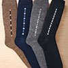 Conjunto de 4 pares de meias de vitela, do mesmo tamanho, de cores variadas (1 preta, 1 cinzenta, 1 azul-marinho, 1 castanha). Agradáveis de usar e elegantemente sóbrias, com debrum de fantasia. Biqueira e calcanhar reforçados. 80% algodão, 17% poliamida, 3% elastano. Este produto é certificado OEKO-TEX® STANDARD 100 pela OEKO-TEX® (N° 9891CIT CITEVE)