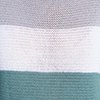 Num volume bastante quadrado, a camisola às riscas brinca com a fantasia, alternando as cores e tirando o máximo partido do efeito cintilante de uma delas. Acabamento em corrente no decote em barco. Bainha canelada e mangas 3/4 batwing.