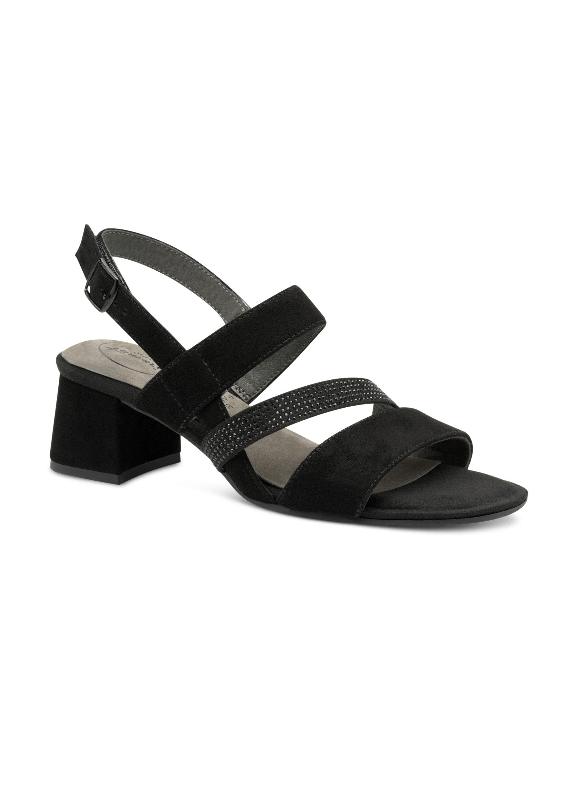 Sandálias de salto Tamaris® Combinam estilo e conforto com suas tiras de couro camurça adornadas com strass brilhantes. O salto forrado e a ponta quadrada criam uma silhueta moderna, enquanto o fecho com fivela no calcanhar garante um ajuste seguro e confortável. Ideais para realçar um look elegante ou adicionar um toque chique a um look casual, estas sandálias são perfeitas para qualquer ocasião em que o conforto não precise comprometer a elegância.